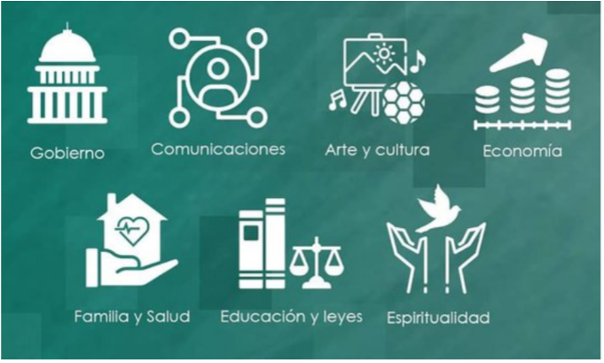 En este contexto, y sobre la base de la visión neocalvinista de las esferas sociales, surgió en ciertos sectores evangélicos y carismáticos el llamado Seven Mountain Mandate (7M). Popularizado en las primeras décadas del siglo XXI, plantea que los cristianos deben influir en siete “montañas” de la sociedad —gobierno, medios de comunicación, educación, economía/negocios, artes/entretenimiento, familia y religión— con el fin de “recuperarlas” bajo principios bíblicos.56 Su intención declarada es movilizar a los creyentes para un impacto transformador en cada ámbito y establecer principios del Reino en la sociedad, en sintonía con los llamados bíblicos a buscar el bien de la ciudad, ser sal y luz y confrontar estructuras del mal.57