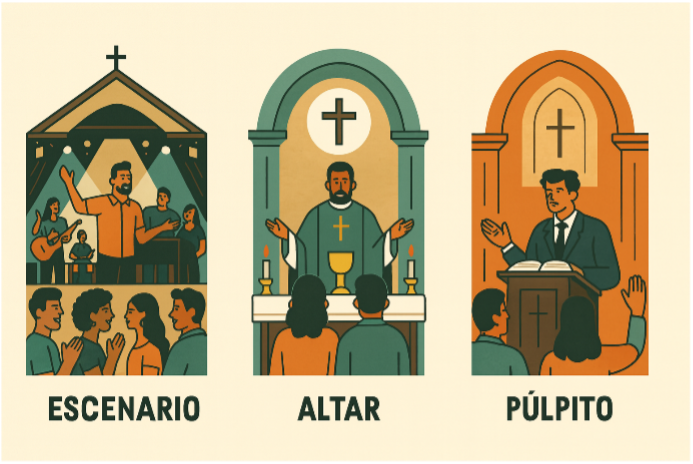 - La Iglesia Espectáculo, impulsada por el sensacionalismo y el carisma, busca entretener más que transformar—reduciendo la vida cristiana a eventos emocionales y experiencias llamativas.
